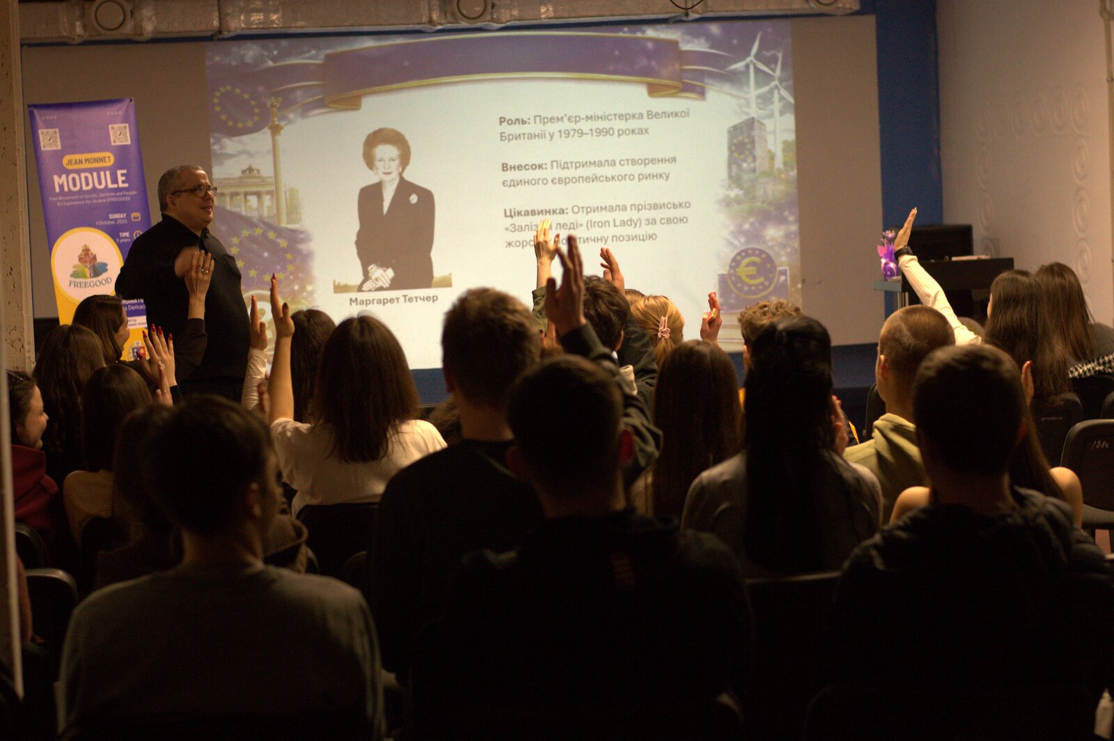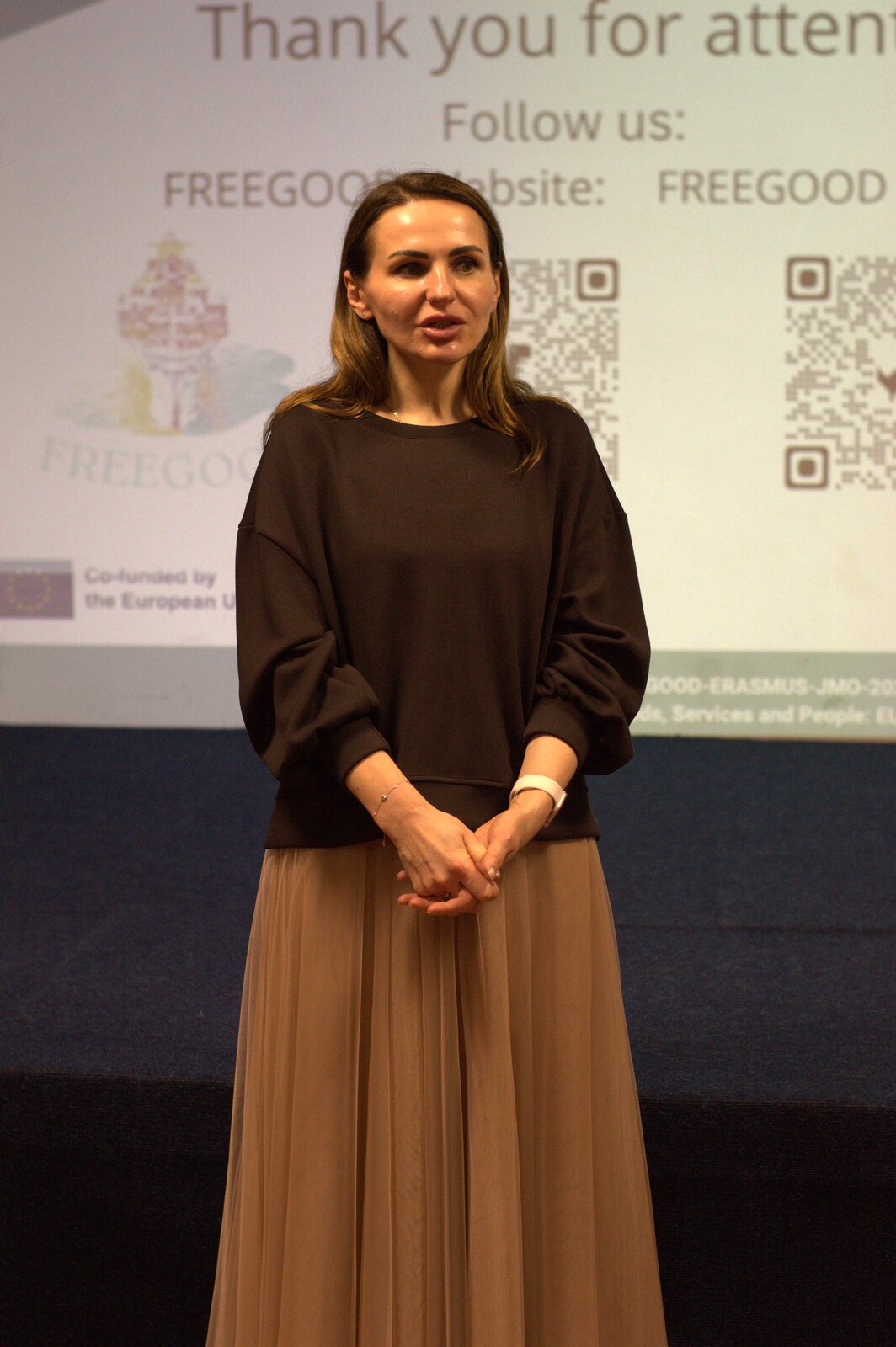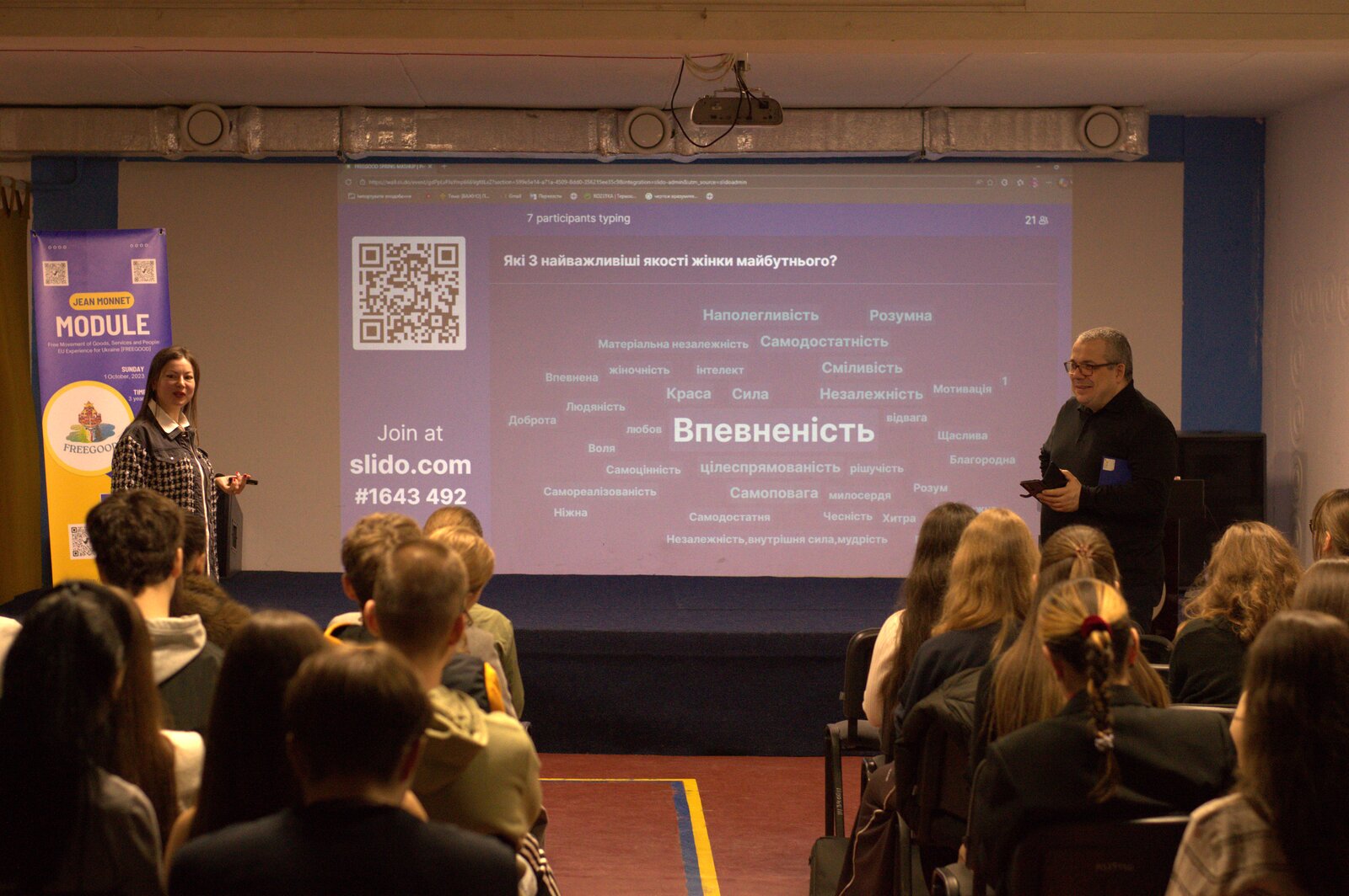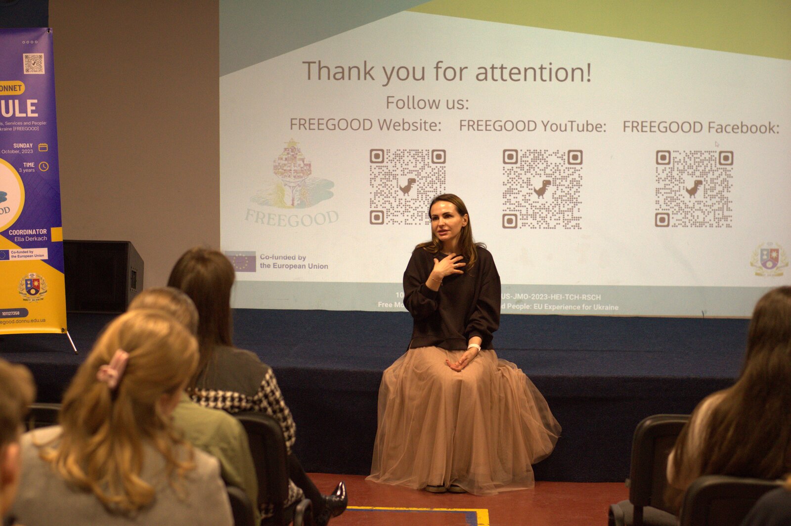 ✅️ проф. ЕЛЛА ДЕРКАЧ, Координатор проєкту “Свобода руху товарів, послуг та осіб: досвід ЄС для України” – з інтерактивом “Global Changmakers in History: Women Steps and Stories, та презентацією можливостей співпраці в рамках проєкту FREEGOOD;