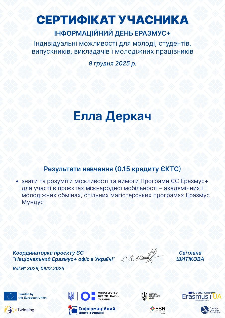 🎯 Координатор проєкту FREEGOOD проф. Елла ДЕРКАЧ взяла участь у ІНФОРМАЦІЙНИХ ДНЯХ ЕРАЗМУС+ У СФЕРІ ОСВІТИ: